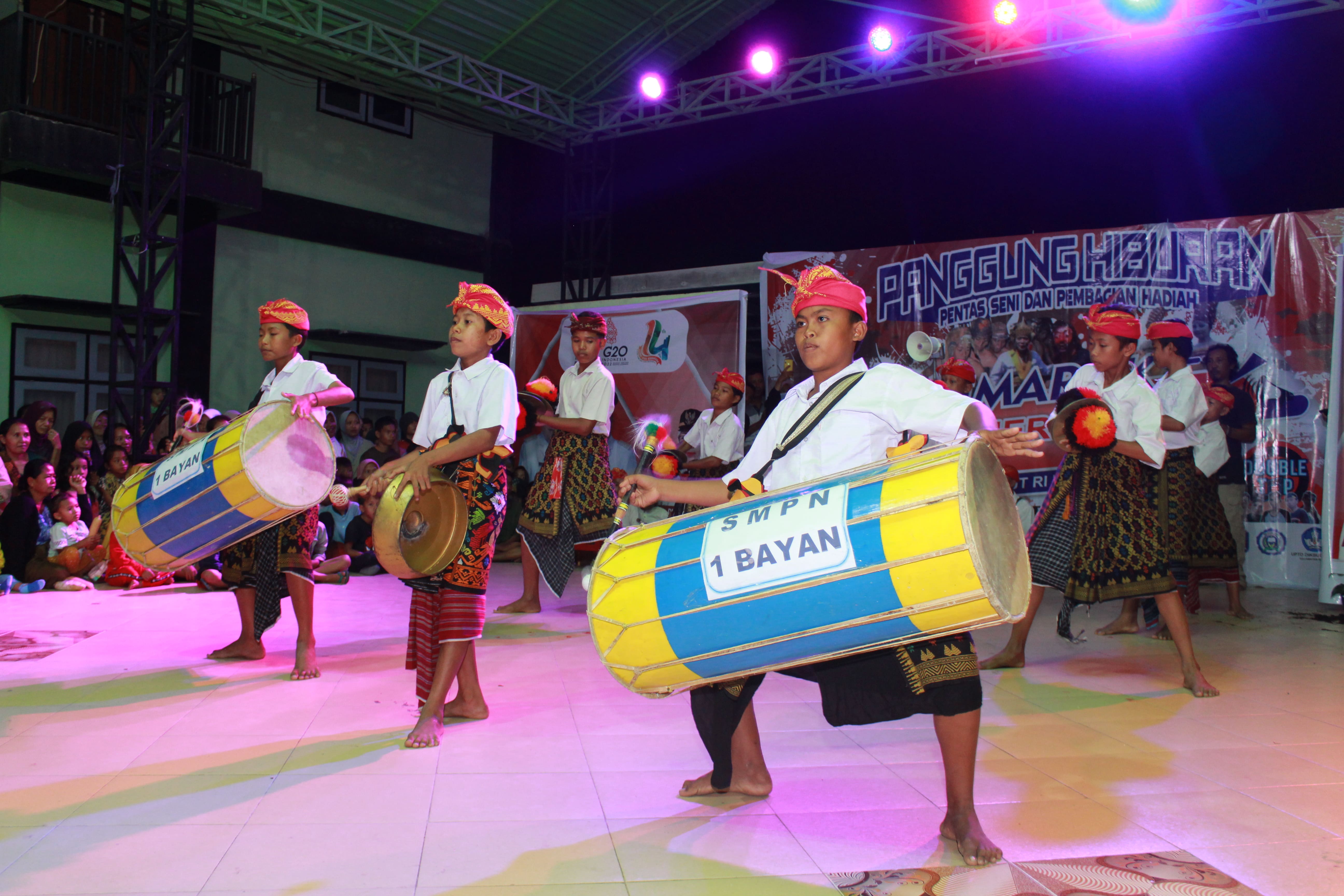 Pada Pentas Seni Kali ini SMPN 1 Bayan Menampilkan 3 penampilan yakni Tari (Tradisional & Nusantara), Drama Kolosal dengan tema kemerdekaan, dan Musik Tradisional Gendang Belek.